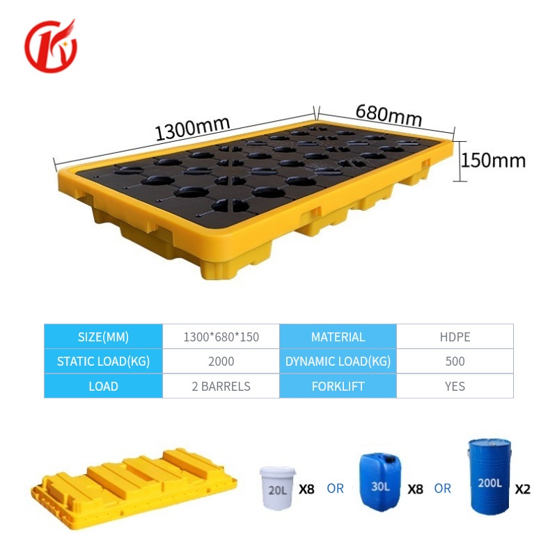 This 4-drum spill containment pallet is made from high-quality, chemical-resistant polyethylene (PE), providing a reliable and durable solution for safely storing and transporting hazardous liquids.