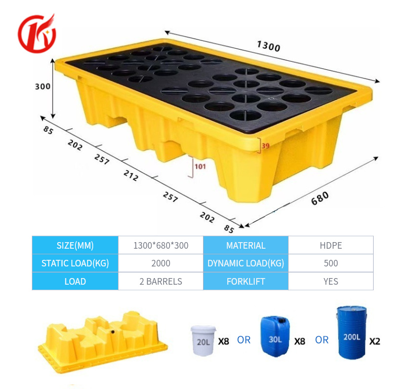 This 4-drum spill containment pallet is made from high-quality, chemical-resistant polyethylene (PE), providing a reliable and durable solution for safely storing and transporting hazardous liquids.